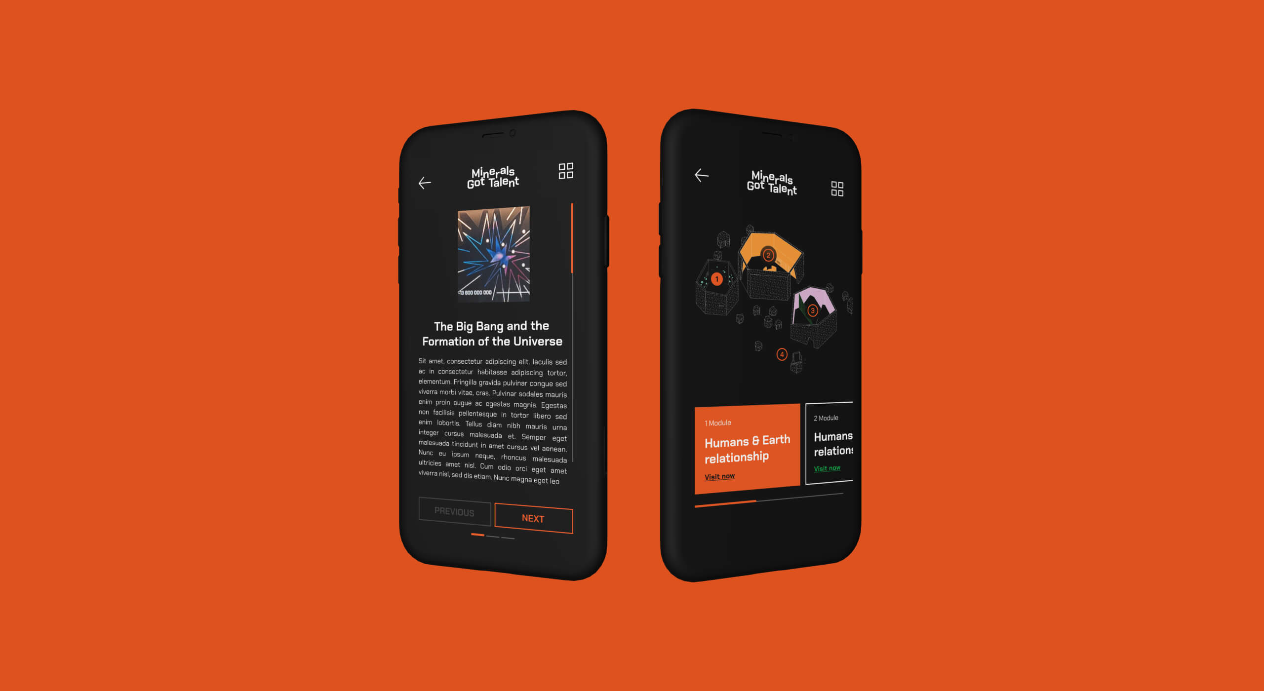 Challenge: The task was to create a user experience and interface for a digital companion that would match the depth and educational value of the physical exhibition. This digital platform needed to engage a young audience while being insightful for visitors of all ages, mirroring the exhibition's journey through Earth's history, human civilization's evolution, and the speculative futures of our mineral dependency.