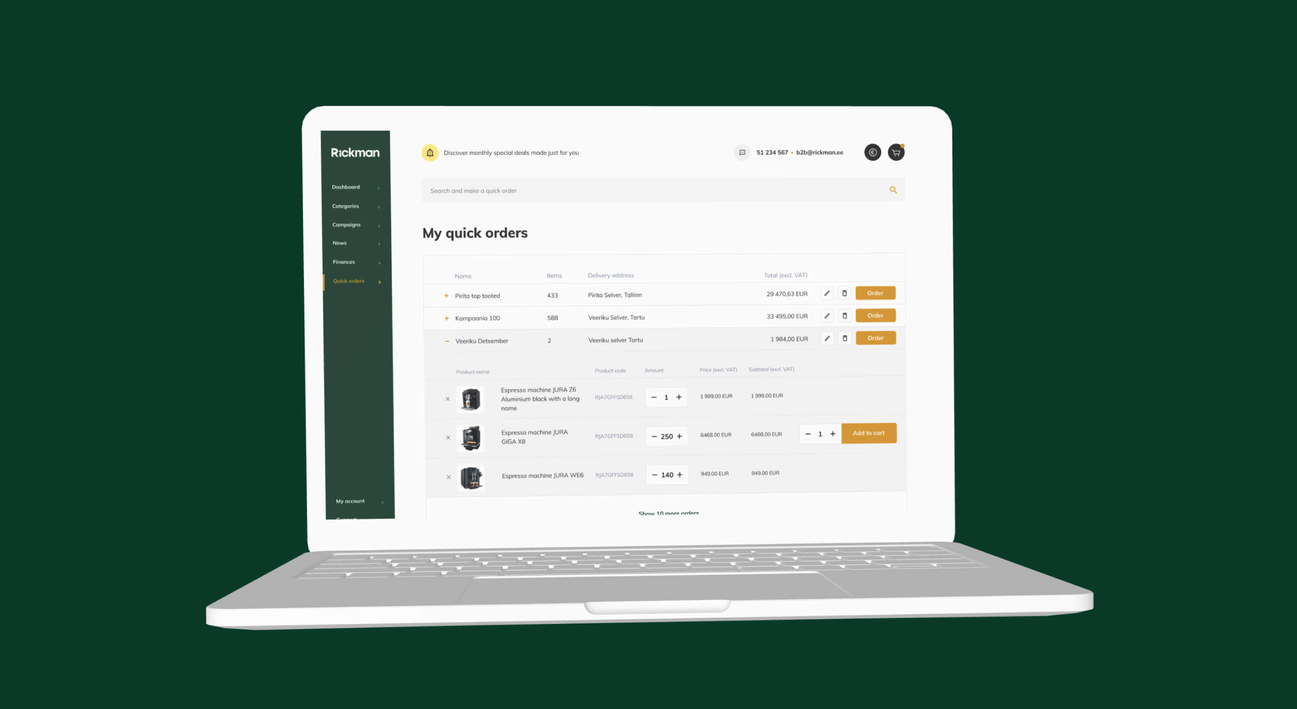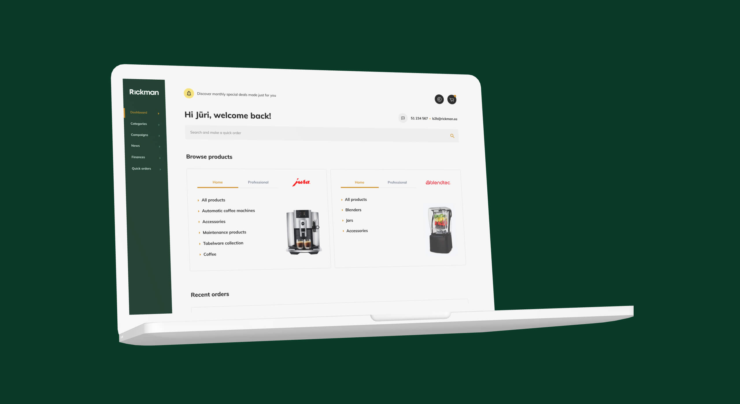 Rickman, the powerhouse behind bringing leading-edge technology brands like JURA and Blendtec to the burgeoning Northern European market, envisioned a transformative leap for their B2B operations. The goal was clear: to transcend the outdated, manual processes of emails and Excel sheets for a sleek, automated B2B eCommerce marketplace that would redefine efficiency and user satisfaction for their resellers.